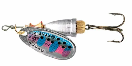 Vibrax Fluo RT (Rainbow Trout).Der patentierte zweiteilige Körper sendet niederfrequente Schallschwingungen aus, die Fische anlocken und Schläge auslösen, während der Schnurdrall praktisch eliminiert wird.• Machined brass• Silber oder Kupfer plattiert• Lackierte und bedruckte Oberflächen• Rasselt beim Reiben an der Glocke• Frei drehen• Edelstahlschaft• VMS-Haken, extrem scharf für schnelles Eindringen, perfekt gehärtet für Stärke