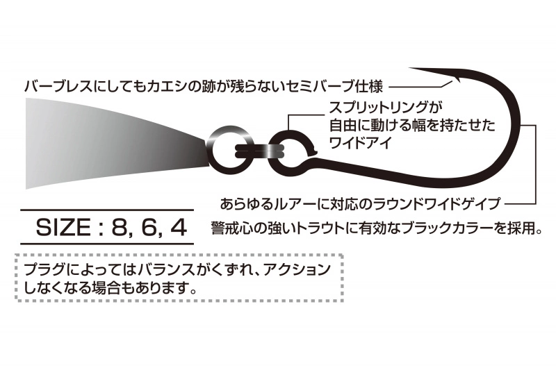 Es handelt sich um einen schwarz gefärbten Haken zum Stoppen von Forellen, der angeblich leichter zu fädeln ist als andere Fische. ‚óè Vertikales Öhr, perfekt für die Verwendung auf Wobblern.’óè Breites Öhr mit genügend Platz, auch wenn der Spaltring gesetzt ist.’óè Runder breiter Spalt mit hervorragender Hakleistung, auch wenn er für jeden Köder verwendet wird.’óè Mikro-Widerhaken’óè NS-Schwarzfinish, das die Härte des Drahtes hervorhebt.
