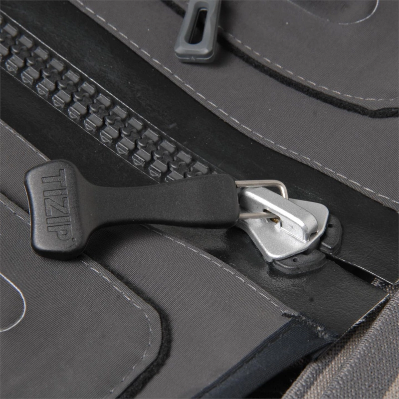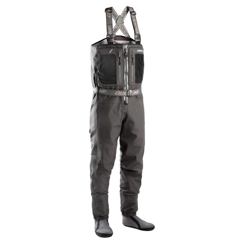 Die Guideline Laxa 2.0 ZIP Wathose besteht aus einem strapazierfähigen 4-lagigen Nylongewebe, hat eine umweltfreundliche PFOA-freie Ausrüstung, ein Sidewinder™ Design für Bewegungsfreiheit und eine hervorragende Passform sowie einen wasserdichten TIZIP® Master Seal Reißverschluss.Die Laxa 2.0 Wathose besteht aus einem robusten 4-lagigen Nylongewebe und einer Membran mit einer Wassersäule von 20.000 mm und einer Feuchtigkeitsaufnahmekapazität von 5000g/m2/24h. Eine umweltfreundliche PFOA-freie Beschichtung auf dem Außenmaterial weist Schmutz und Wasser ab. Nähte an der Innenseite der Beine werden durch das Guidelines Sidewinder™ Design vermieden, das zudem für eine gute Bewegungsfreiheit und eine gute Passform sorgt. An der Vorderseite befindet sich ein wasserdichter TIZIP® Master Seal-Reißverschluss, der das An- und Ausziehen der Wathose erleichtert.Hoch oben auf der Vorderseite der Laxa Wathose befinden sich zwei große Brusttaschen mit Netzvorderseiten und starken vertikalen Reißverschlüssen. Dahinter befinden sich umfangreiche, mit Fleece gefütterte Wärmetaschen. Außerdem gibt es elastische, verstellbare Hosenträger, eine Gürtelschlaufe auf der Rückseite mit doppelter Höhe und einen elastischen und verstellbaren Gürtel mit Schnellverschluss; alles für besten Sitz und Komfort.Die Wathose verfügt über strapazierfähige Nylon-Schutzbleche und gummiverstärkte Bündchen, die ein Verrutschen sowie das Eindringen von Kies und Sand in den Stiefel wirksam verhindern.Hochwertige Neoprensocke, die sich unter Druck nicht zusammendrückt, eng anliegt und für den rechten/linken Fuß geformt istLaxa 2.0 ist in 11 verschiedenen Größen von XS – XXL erhältlichFarbe: Dunkelgrau/Graphit mit passenden Hosenträgern, Gürtel und SockenWasserdichter TIZIP® Master Seal-Reißverschluss