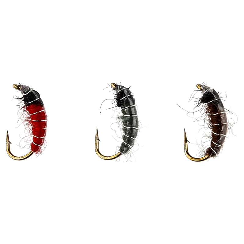 Ein Sammelsurium von 3er-Packungen Eisangelhaken, die auf spezielle, für das Eisfischen geeignete Haken gebunden sind. Setzen Sie die Haken auf ein Vorfach oder eine Kette unter einem vertikalen Eis-Jig. Unwiderstehlich! Kann für zusätzliche Attraktivität mit Maden geködert werden.