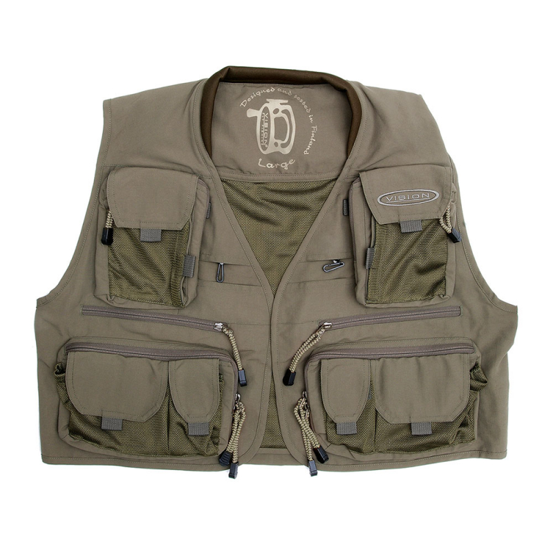 Vision Caribou-västen har gott om fickor, utrustade med starka dragkedjor eller kardborreband. Västarna är tillverkade av högkvalitativt och slitstarkt nylontyg som är mycket vattenavvisande. Axelpartiet är försett med ett extra lager av speciellt poröst material som fördelar vikten perfekt.Fodrad krageMeshfodrad för god komfortFyra stora fickor med dragkedjaSex framfickor med kardborreband2X fickor med stift på rullarStor bakficka med dragkedjaRobust D-ring för fickan